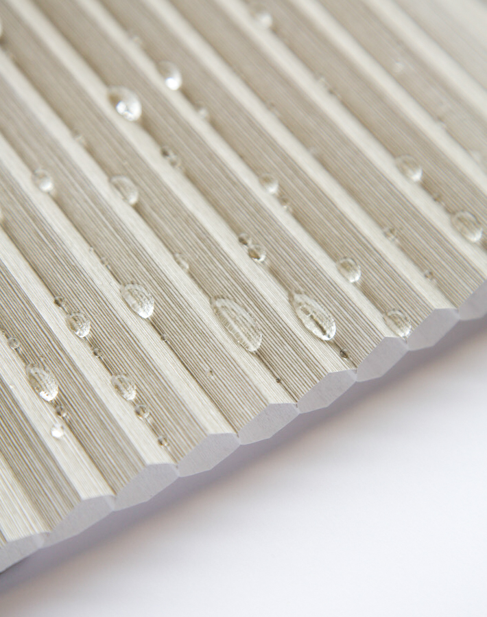 Features water-resistant, sustainable materials inspired by nature's perfect filtration systems. Designed to complement rainy environments, these blinds repel moisture while maintaining crystal-clear views